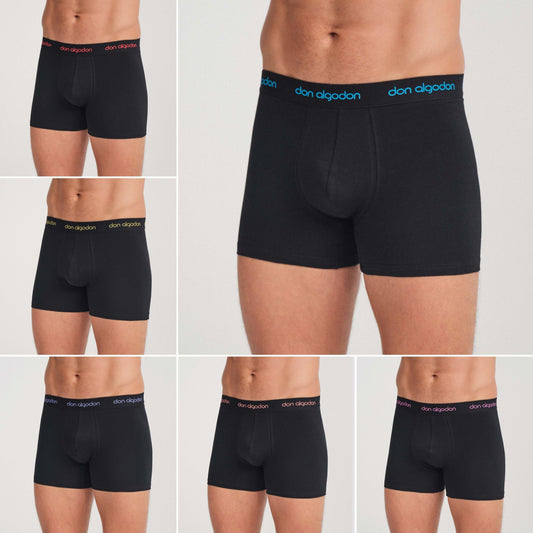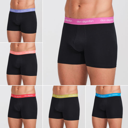 Don Algodon | Pack 6 Boxers para Hombre | Negros con Cintura a Colores | Transpirables