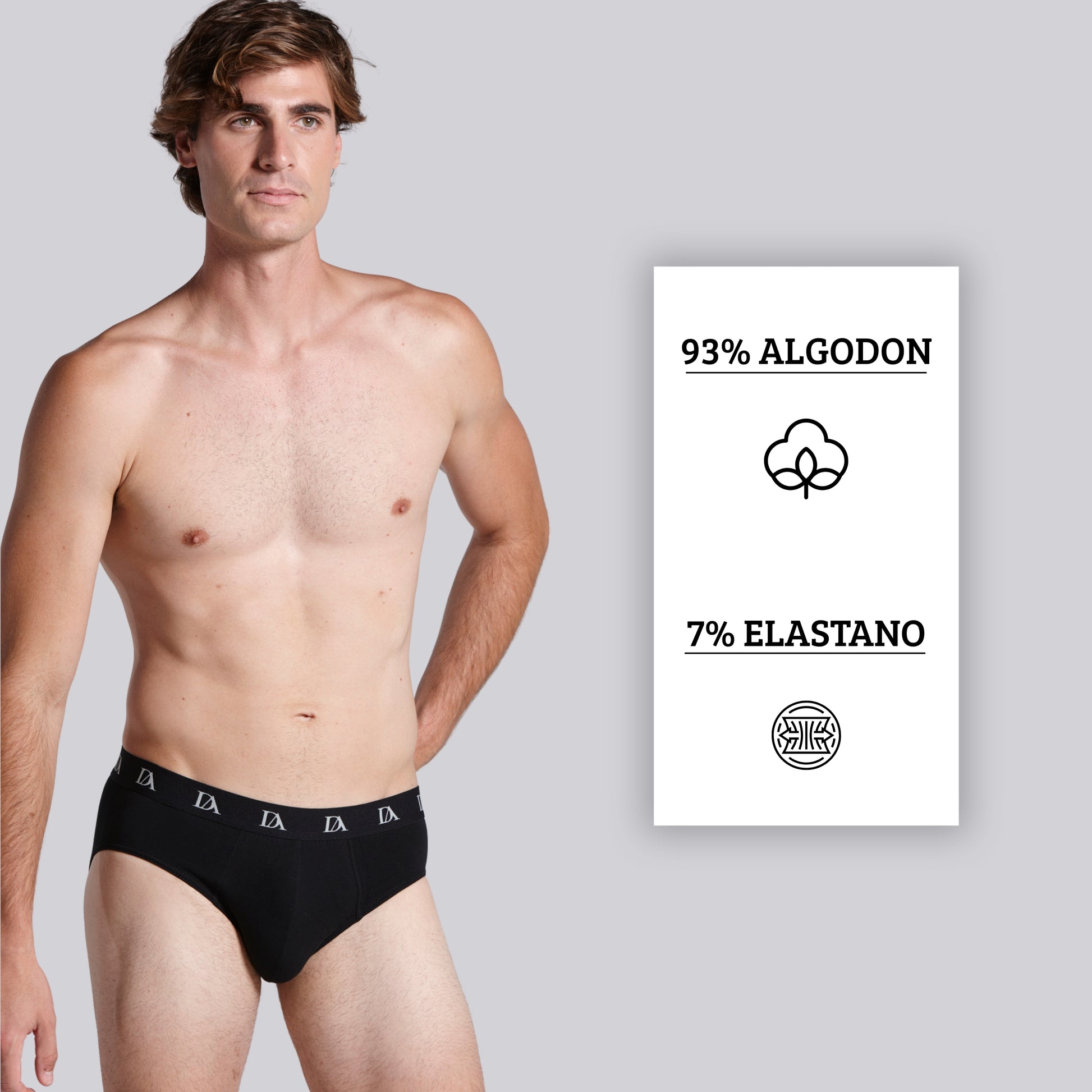 Elaborados con 93% algodón y 7% elastano, estos slips destacan por su alta calidad y durabilidad. Las costuras reforzadas garantizan resistencia al desgaste y mantienen la forma y el color tras múltiples lavados. La cintura elástica con el logo de Don Algodon asegura un ajuste perfecto y cómodo, adaptándose a cualquier tipo de cuerpo y circunstancia.